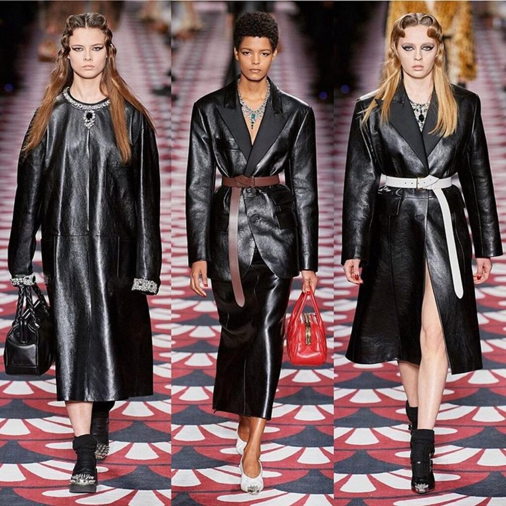 Czarny, skórzany płaszcz to jeden z głównych bohaterów tegorocznych fashion weeków. Możesz wybrać matowy albo z połyskiem i nosić do dzianinowych golfów . Na skórzanych płaszczach się jednak nie kończy. Mocnym punktem na wybiegu Saint Laurent były lateksowe legginsy – idealne do noszenia z grubymi, plecionymi, oversizowymi swetrami.