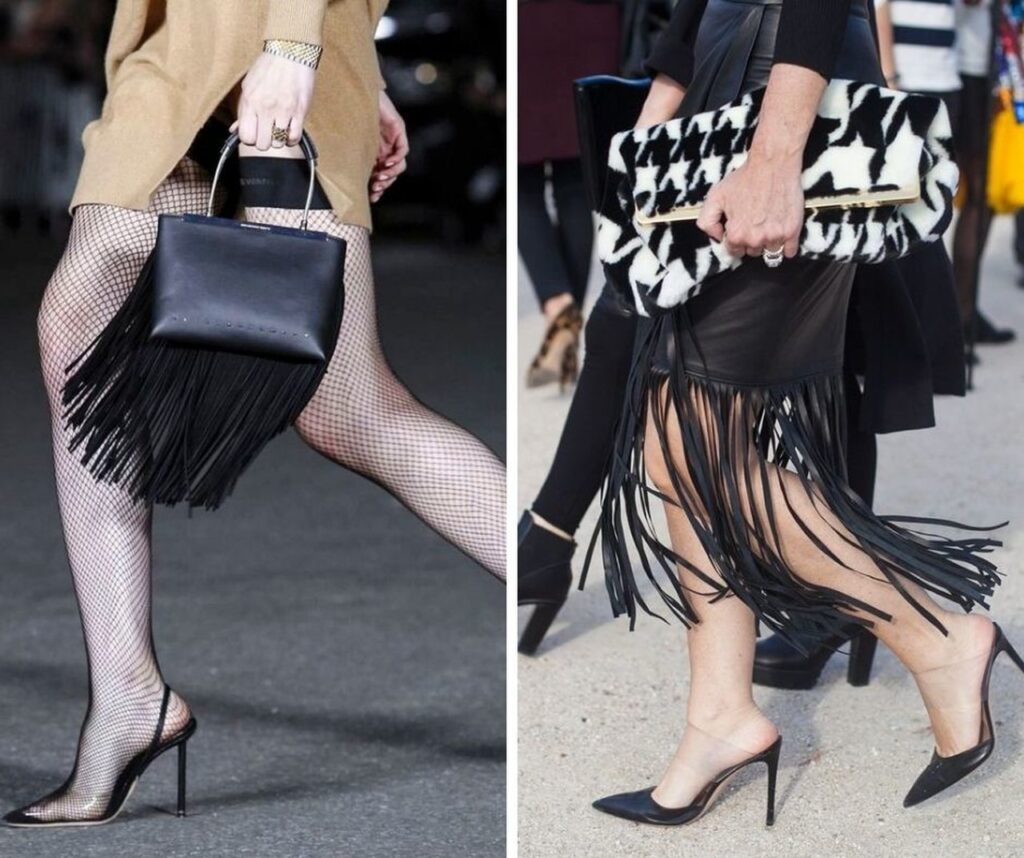 Nie tak nonszalanckie jak te w kowbojskim wydaniu, czy Pocahontas, a raczej będą mile widziane eleganckie i ze smakiem. W tym sezonie najczęściej zdobią spódnice – jak na pokazie Diora czy Prady, ale równie dobrze mogą pojawić się także na butach jak na biżuterii jak i torebce.