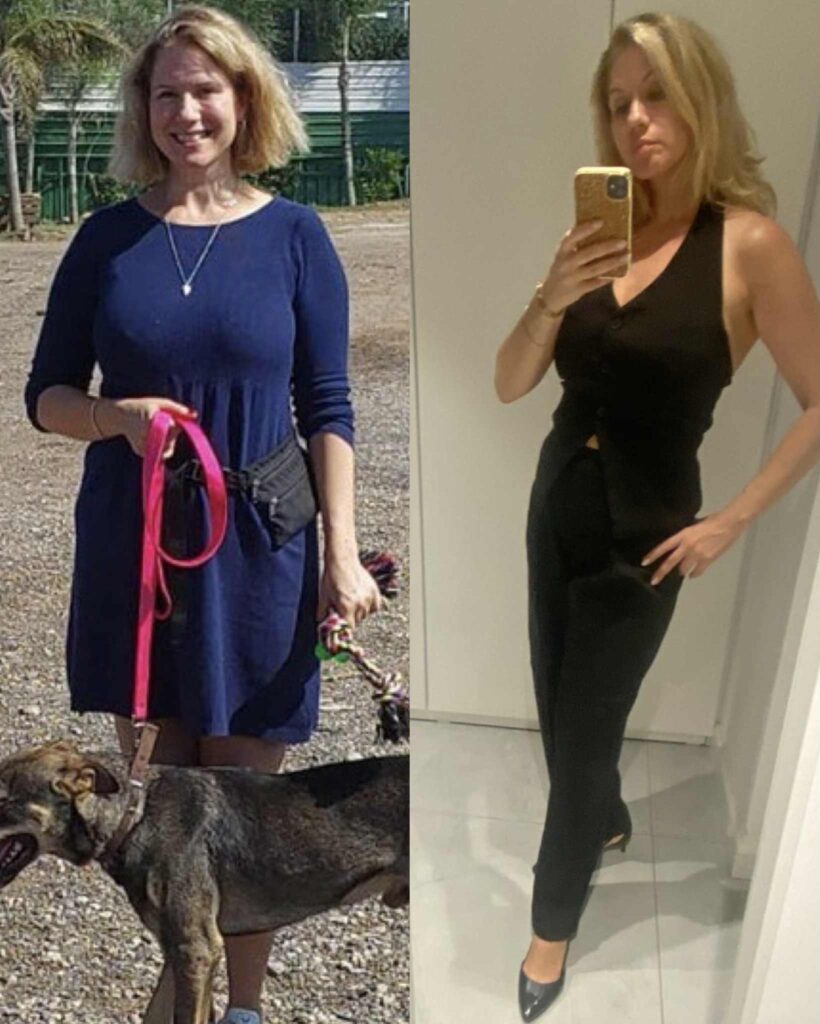 Tak — pracuję z klientkami z całej Polski oraz ze świata i wyniki są świetne. Poniżej na zdjęciu widzisz efekt zmiany Debbie, która mieszka w Izraelu, którą prowadzę online.