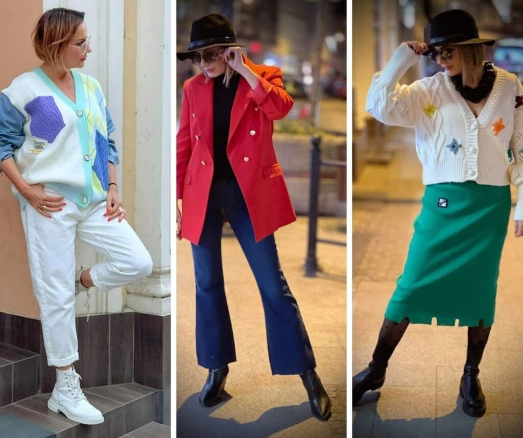 Jak już wiesz kocham klasyczny look, bardziej sportowy niż elegancki, ale tak naprawdę to pomieszany. Moje klientki też go kochają i często z niego korzystają. Jest prosty i oparty na podstawowych elementach garderoby, czyli dobrze dobranych jeansach, t-shircie i marynarce. Kocham takie połączenie. Niby luz ale z klasą i szczyptą elegancji. W czasie home office też świetnie się sprawdzi. Jeśli nie lubisz marynarek, to fajną propozycją będzie też rozpinany sweter w serek. Jeśli będzie z dodatkiem kaszmiru to zapewne będzie bardziej wytworny niż sportowy. Swetry i marynarki znajdziesz w wielu sklepach, ale jeśli szukasz czegoś wyjątkowego, to koniecznie zajrzyj do sklepu Nanu, który prowadzi nasza kursantka, osobista stylistka przepełniona pasją i miłością do ubrań i kobiet, które ubiera.