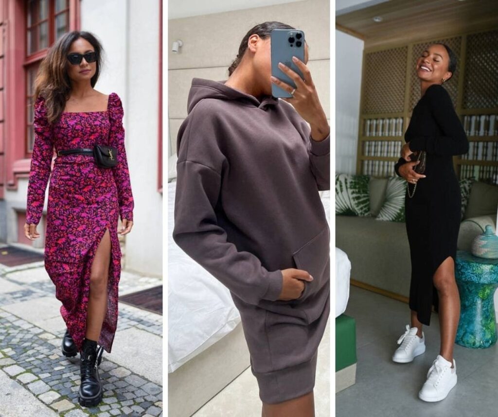 Kocham też dresowe, wygodne sukienki. Są bardzo komfortowe niczym dres, a jednak nie jest to dres. Uwielbiam łączyć je z klapkami bądź białymi tenisówkami. Jeśli zadbam też o włosy, nienaganny makijaż oraz ulubione perfumy, to taka stylizacja sprawi, że praca w domu będzie ogromnie przyjemna. Jeśli jednak wolisz bardziej zwiewne i dziewczęce sukienki, to te także znajdziesz w sklepie Laurella. To marka którą poznałam podczas przeglądu szafy u Krysi, która uwielbia dziewczęcy styl.