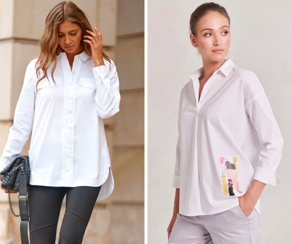 Piękne białe koszule w różnych fasonach znajdziesz między innymi w sklepie Fashion Look Sylwia Wojtera w Radzyminie. Ten butik prowadzi nasza kursantka, osobista stylistka, która nie tylko pięknie Cię ubierze, ale też możesz zapisać się do niej na analizę kolorystyczną oraz diagnozę sylwetki.