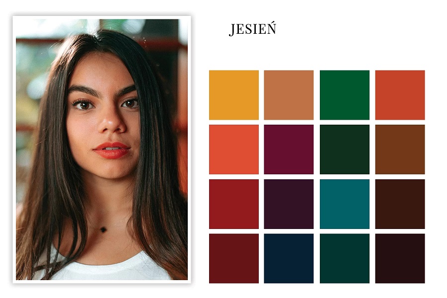 Jeśli czujesz, że najbliżej Ci do jesieni, to właśnie po kolory jesienne powinnaś sięgać. Jak wygląda jesień, z czym Ci się kojarzy? Jesień to barwy ziemi, zieleń i żółć spadających liści, rude korony drzew, czerwień muchomorów, brąz podgrzybków, filet bakłażanów, złociste ciepłe słońce. Po takie właśnie kolory powinnaś sięgać jako jesienny typ kolorystyczny.