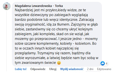 A oto komentarz jednej z nas pod postem, który wywołał burzę w internecie. Mnie się on bardzo podoba i jest bliski mojemu sercu, odkąd ja jestem blisko siebie. Zobacz inne komentarze tutaj i daj znać co Ty myślisz na ten temat.