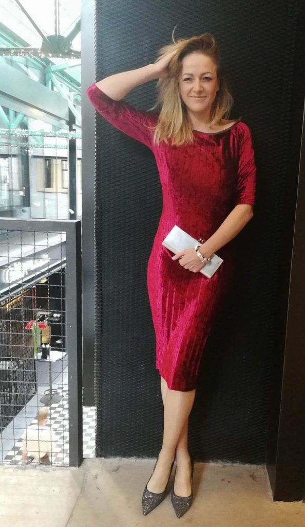 3. Przepiękna, welurowa sukienka idealna dla klepsydry, dla kobiety o szerszych ramionach ale też dla tej o szerszych biodrach. Ta ostatnia powinna jednak dodać szykowny naszyjnik, aby zrównoważyć szersze biodra. Dostępna w dwóch niesamowitych kolorach rubinowej czerwieni oraz szafiru.