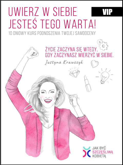 Ten kurs pomoże Ci uwierzyć w siebie. To podstawa do tego, abyś mogła jednoznacznie określić to, co jest dla Ciebie ważne i w jakim kierunku chcesz iść. Abyś uwierzyła w siebie i zaczęła działać. To od pewności siebie i wiary we własne możliwości wszystko się zaczyna. Ten kurs to trampolina, na której możesz się odbić w dowolnym i wymarzonym kierunku. To podstawa od której powinnaś zacząć, aby wreszcie uwierzyć w to, że jesteś wyjątkową kobietą.